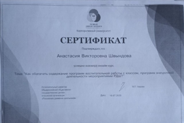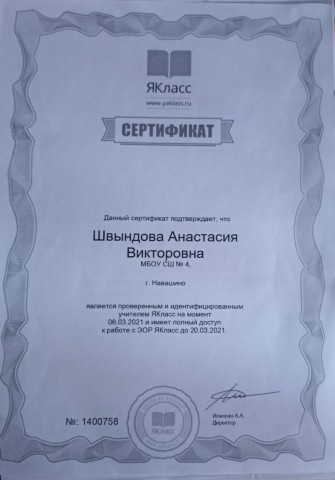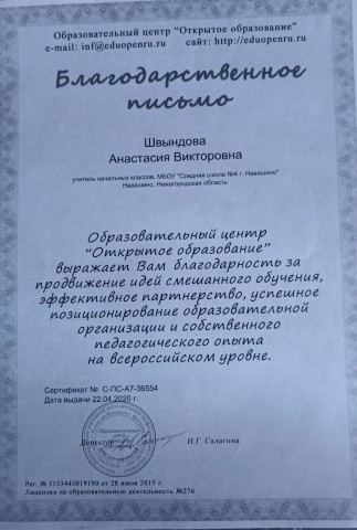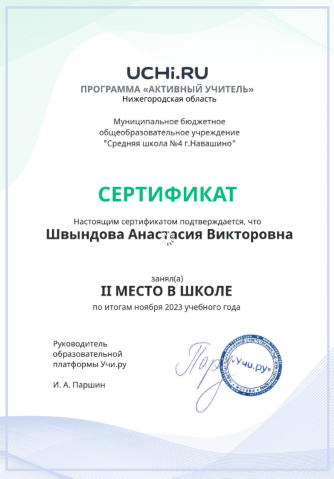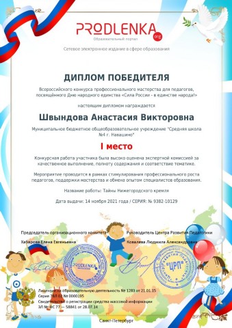 должность: учитель начальных классов МБОУ "Средняя школа №4 г. Навашино"